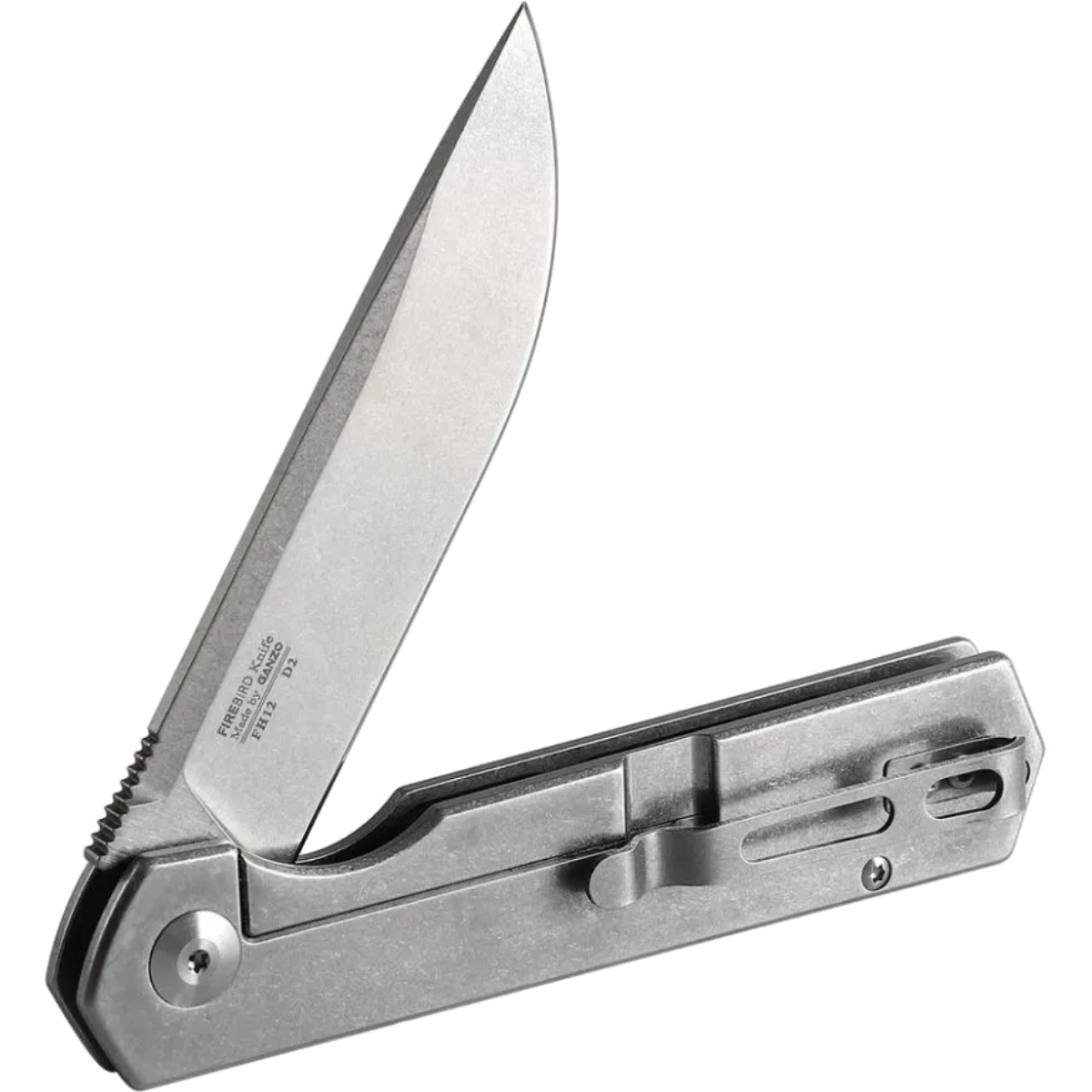 Рукоятка выполнена из нержавеющей стали с выемкой под пальцы. Надежный замок Frame Lock обеспечивает фиксацию клинка. Предусмотрены съемная клипса с возможностью перестановки и отверстие под темляк. Firebird FH12-SS сочетает минимализм дизайна и практичность конструкции.