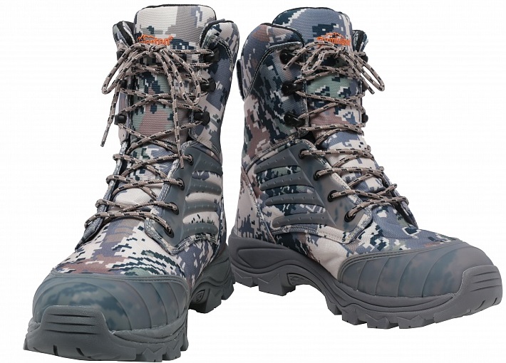 Модель надежно фиксируется на ноге прочной шнуровкой. Камуфлированный цвет ботинок поможет создать полный комплект с верхней одеждой.