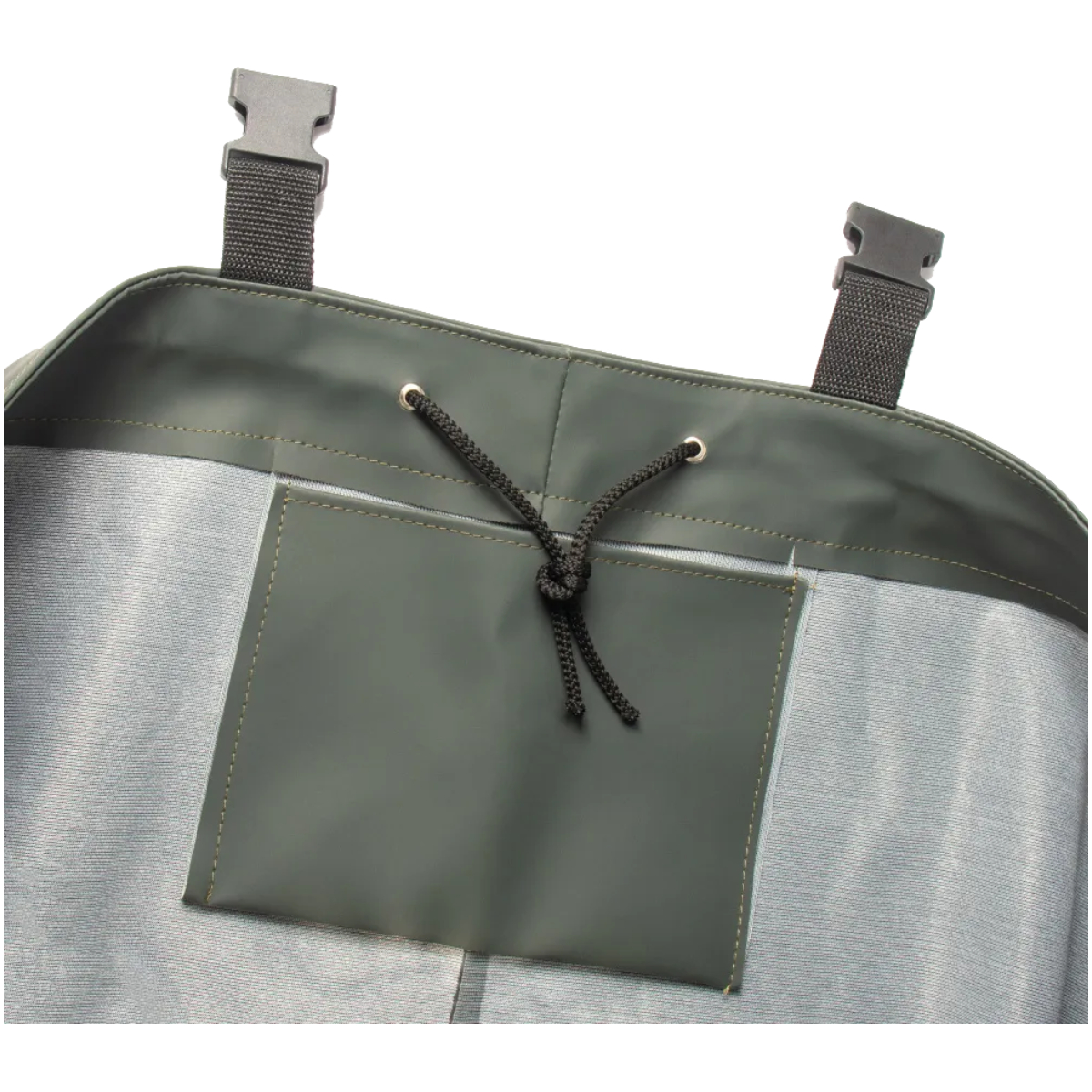 В верхней части изделия расположены наружный и внутренний карманы, которые позволяют хранить мелкие аксессуары и нужные в работе вещи. Такое решение делает полукомбинезон практичным и функциональным выбором для рыбалки и отдыха на природе.