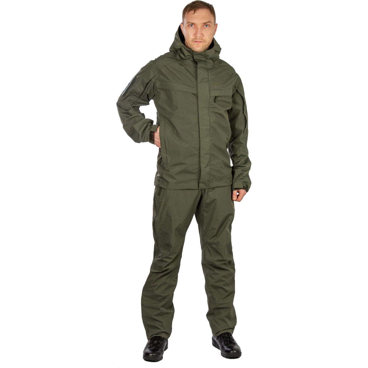 Свободный крой обеспечивает свободу движений и позволяет надеть комплект поверх основной одежды в случае резкой перемены погоды. Это особенно актуально для туристов и рыбаков, которые могут столкнуться с затяжной непогодой. Костюм представляет собой современный тактический дождевик, изготовленный из материалов высокого класса.