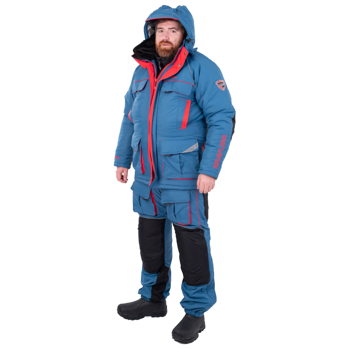 Брюки оснащены регулируемыми лямками для комфортной посадки и эластичными манжетами внизу, обеспечивающими плотное прилегание к обуви. Этот костюм — оптимальный выбор для активной зимней рыбалки, благодаря функциональности и долговечности.